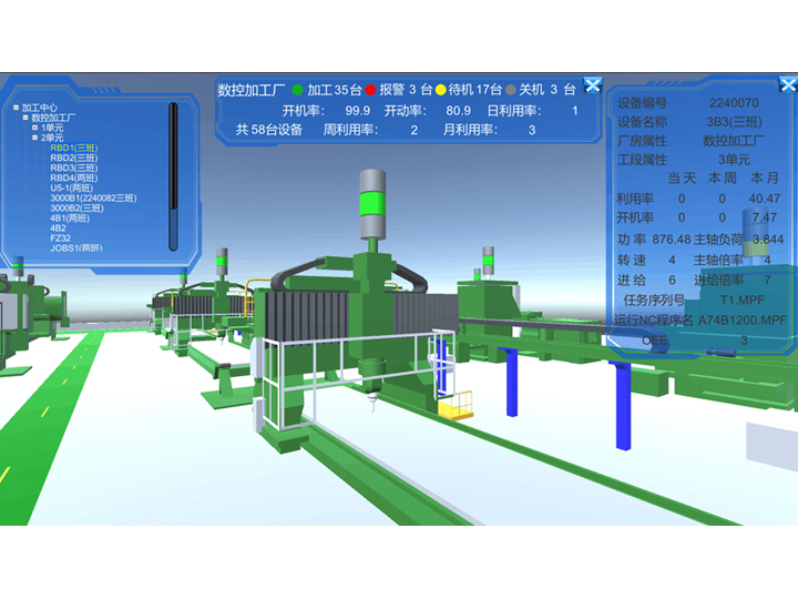 車間3D可視化管理系統通過三維模型還原生產現場的設備環境、聯通設備數據;