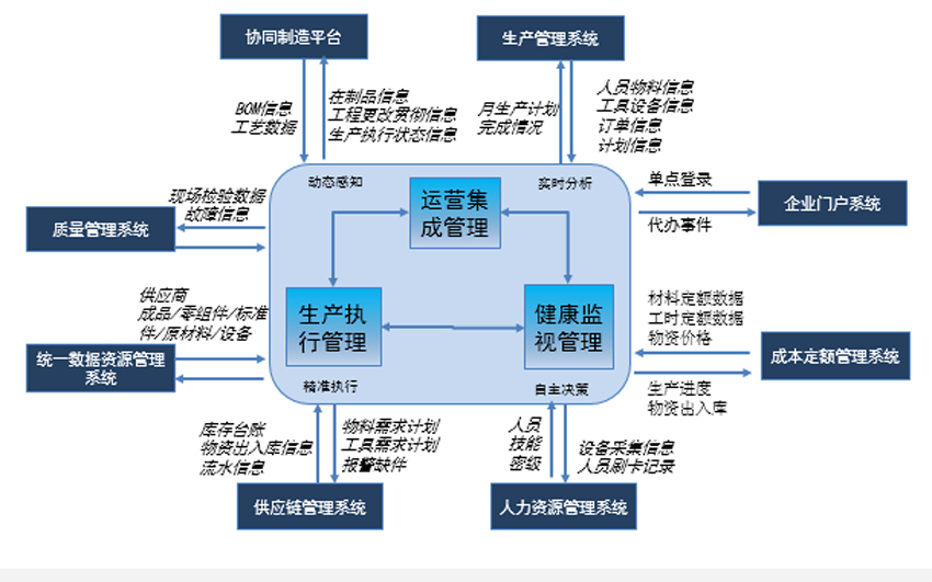 通過設備、車間、企業級業務應用等層次的垂直集成,構建總裝脈動生產線智能管控及健康監視平臺。以大數據中心為支撐,突破產線設備互聯、多源數據信息采集及關聯、生產過程多要素可視化管控、設備及產線健康狀態監視及預測預警等關鍵能力,實現車間執行動態感知、生產多要素透明可視、問題處理及時高效、業務決策智能輔助,減少生產中計劃、執行、保障等環節中的問題,保證生產線整體的生產節拍和生產質量。